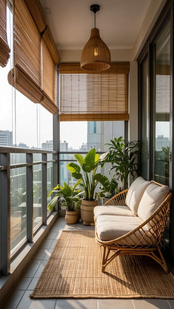 - Бамбук и ротанг: Пара кресел или столик из ротанга мгновенно добавят нужного настроения.