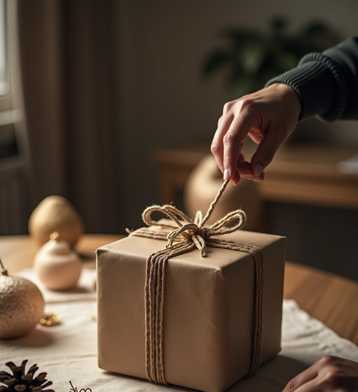 - Детали: Вместо банта можно использовать кожаный шнурок, сургучную печать или настоящую еловую ветку (если праздник зимой).