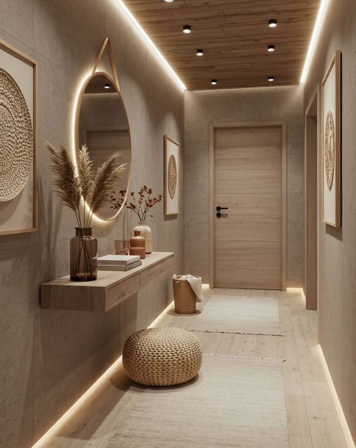 И, конечно, не забывай про уют. Небольшой коврик, стильные крючки, красивая ваза на консоли — эти детали делают пространство живым. Если ты любишь добавлять в дом особенные вещи, обрати внимание на экологичный декор. Натуральные материалы, такие как дерево или лоза, всегда добавляют тепла, что особенно важно для коридора без окон.