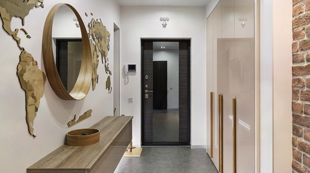 Лучшее место — на одной из длинных стен. Если повесить большое зеркало во всю высоту стены, ты просто не узнаешь свой коридор. Он станет будто вдвое шире. Можно использовать несколько зеркальных полотен с фацетом, создавая интересное панно.